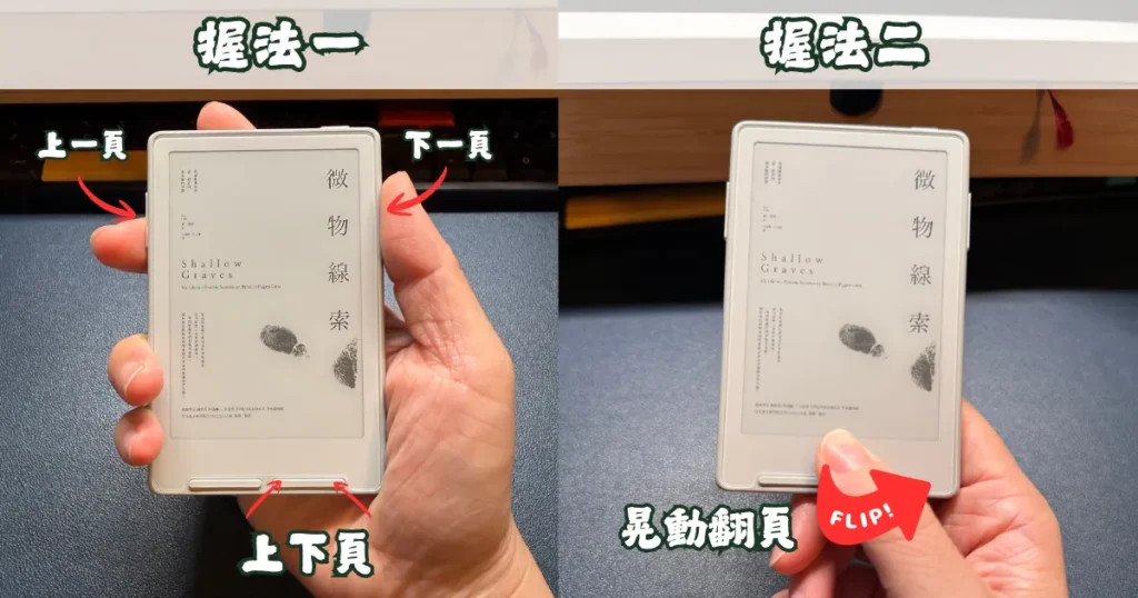 X3 比 X4 多了一個超方便的功能:搖晃翻頁。這對我來說簡直是救星!我可以換另一隻手拿,甚至握住閱讀器的底部來讀。這樣一來,我閱讀時就不需要一直低著頭,保護了我的頸椎。而且它的反應很流暢,不會有那種卡卡的感覺。